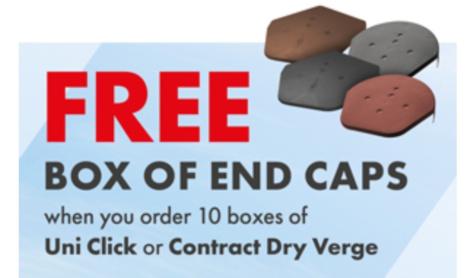 Throughout January and February 2021, we're giving away a free box of End Caps to Klober account holders when they order 10 boxes of Klober Uni Click or Contract Dry Verge.
